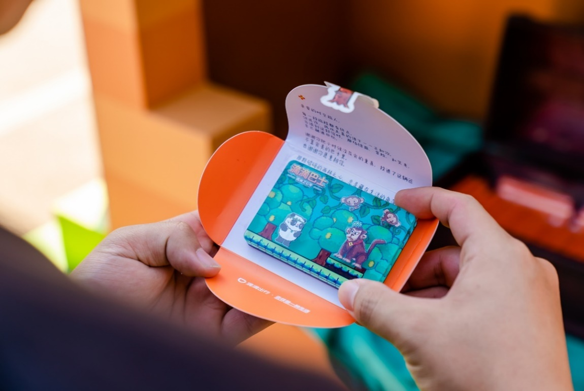 除此之外,雨林之心号设置了多个情景互动环节,希望打造全程沉浸式互动体验。用户上车前可前往“时空旅人”主题限定车站,与“时空使者”滴滴熊猫仔仔击掌,开启这段梦幻旅程;旅途过程中,用户可以通过按动前排座椅靠背的游戏按钮,与滴滴熊猫仔仔一起参与主题游戏;在抵达目的地时,将收获一份主题大巴准备的热带雨林专属礼物。